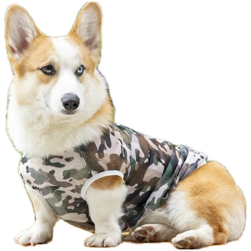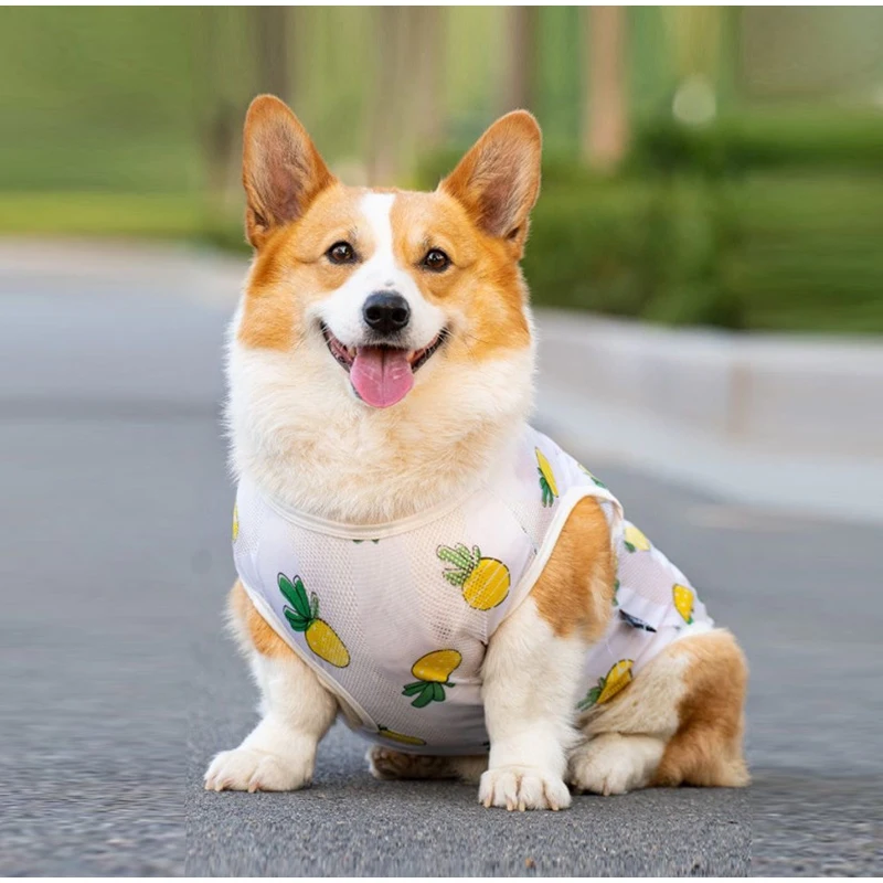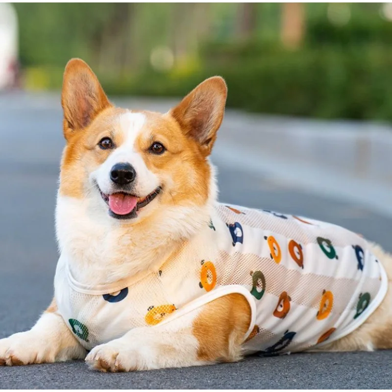 Summer Pet Dog Mesh Vest Thin Cooling Breathable Dog Suit Small Medium Sized Dog Fadou Corgi Chai Cat Suit Summer Shirt Clothes